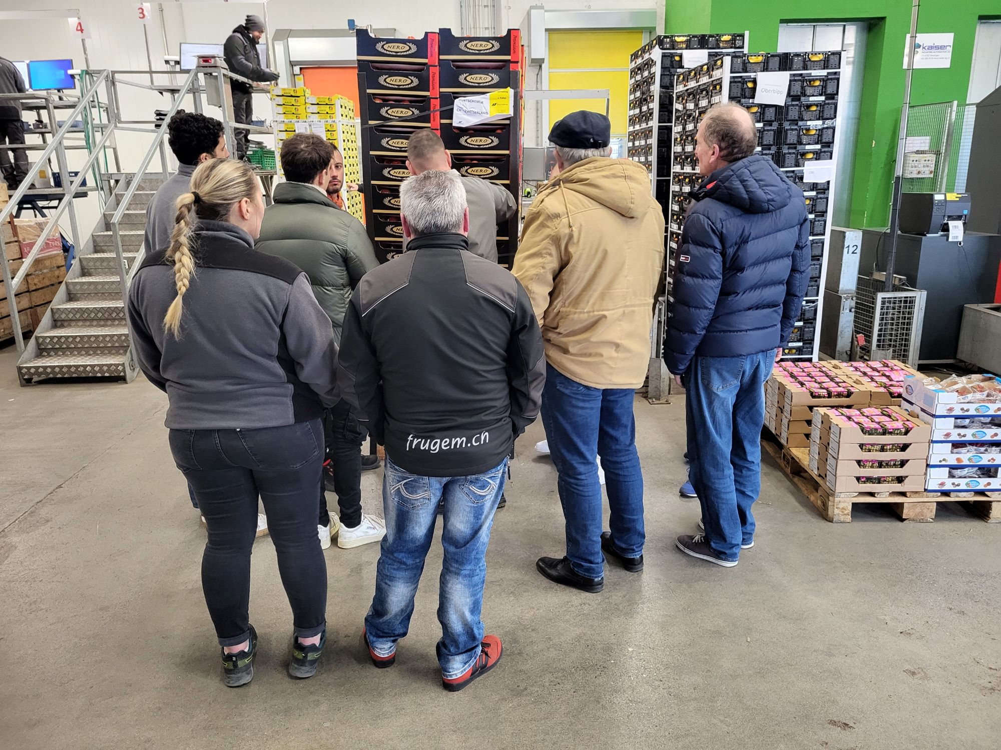 Nach dem gemeinsamen Mittagessen im Restaurant folgte am Nachmittag der praktische Kursteil. Im Rahmen einer Betriebsbesichtigung hatte die Gruppe die Möglichkeit, bei einer Wareneingangskontrolle zuzusehen, wobei Adrian Bieri den Teilnehmenden jeweils die einzelnen Arbeitsschritte erläutert hat. Anschliessend hat das Team von Schwab-Guillod AG verschiedene fehler- und mangelhaft Gemüse- und Früchtearten zur Verfügung gestellt, die es nun durch die Teilnehmenden zu beurteilen gab. Jede/r Teilnehmende nahm sich einer Kiste an, begutachtete die Ware und zeigte der Gruppe die entdeckten Schäden und Mängel auf.